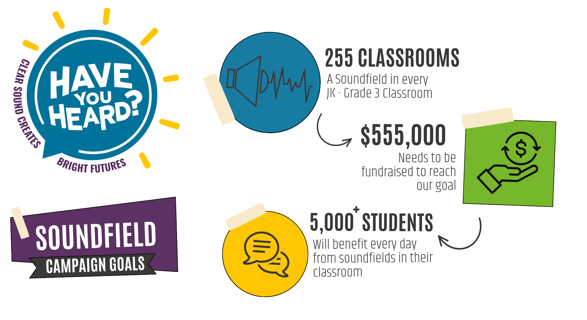 The Have You Heard campaign is a district-wide initiative to equip primary classrooms (JK–Grade 3) with soundfield amplification systems, ensuring every student can hear and engage fully in their learning environment. The full campaign goal is $555,000 to install 255 soundfield systems across schools in the Hastings and Prince Edward District School Board.
